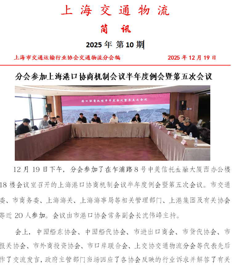 简讯2025-010:分会参加上海港口协商机制半年度例会暨第五次会议